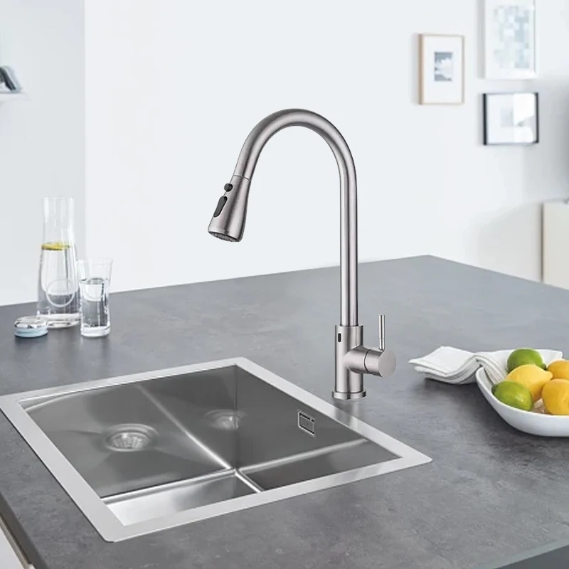 Rörelseaktiverad teknologi: Du behöver inte röra kranen, vatten rinner ut genom avkänningssystemet och stängs av automatiskt inom 3 minuter, vilket förhindrar oavsiktlig beröring.